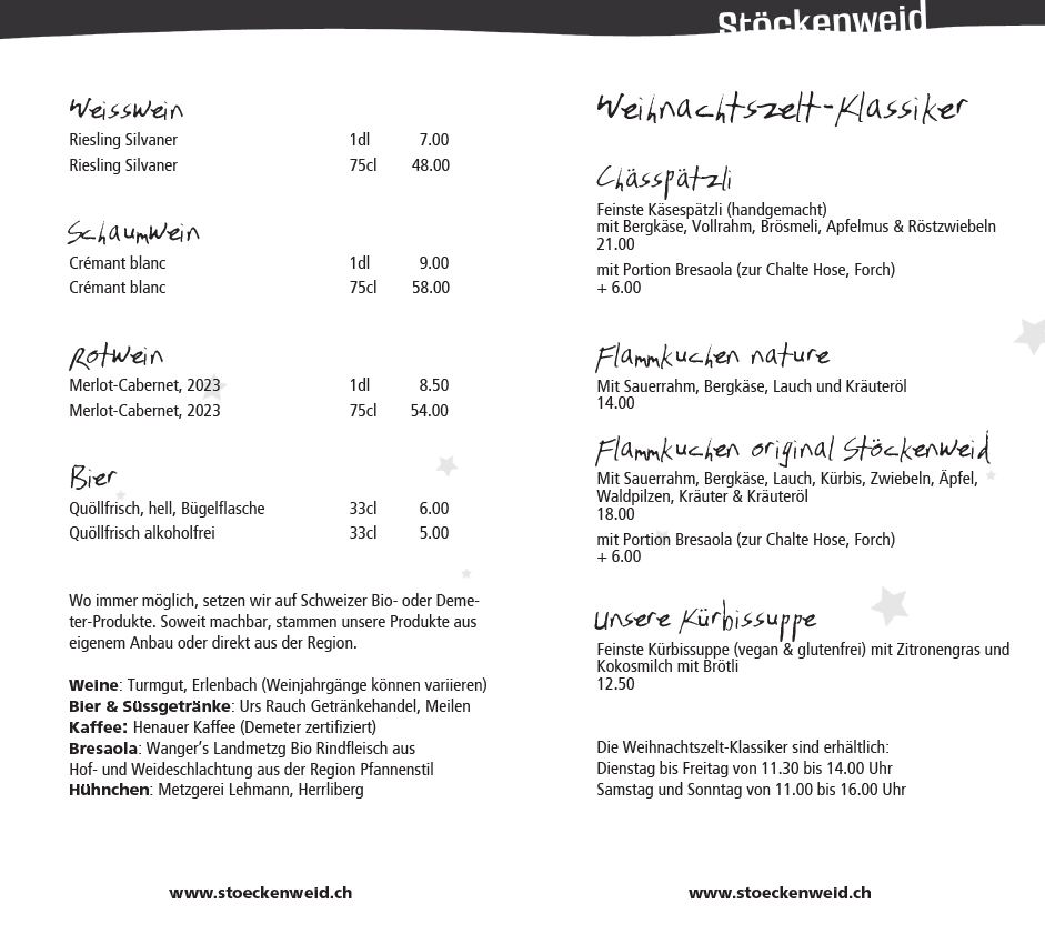 Die Weihnachtszelt-Klassiker im Café, sind erhältlich: Dienstag bis Freitag von 11:30 bis 14:00 Uhr Samstag und Sonntag von 11:00 bis 16:00 Uhr